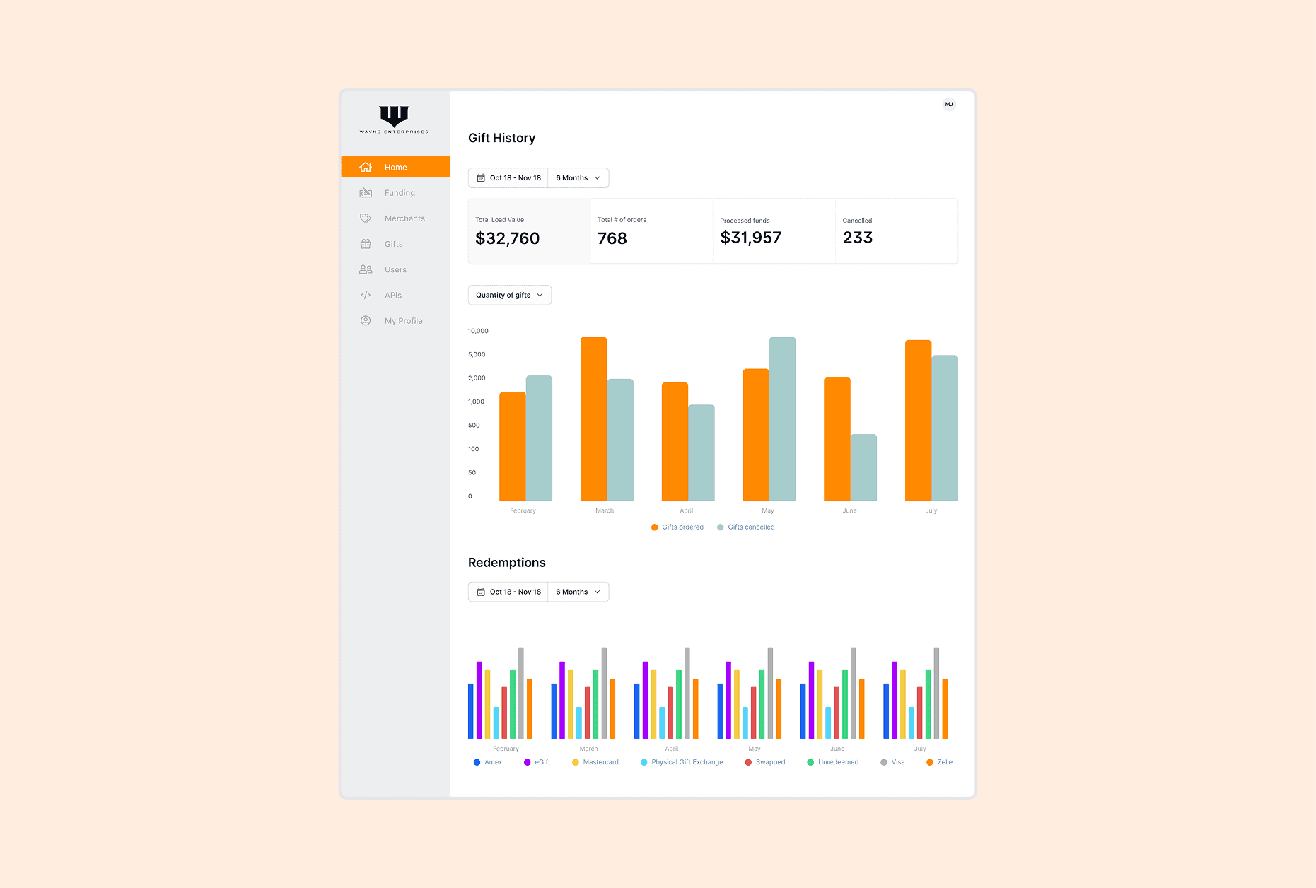 Gift Redemption History — instant visibility into program activity