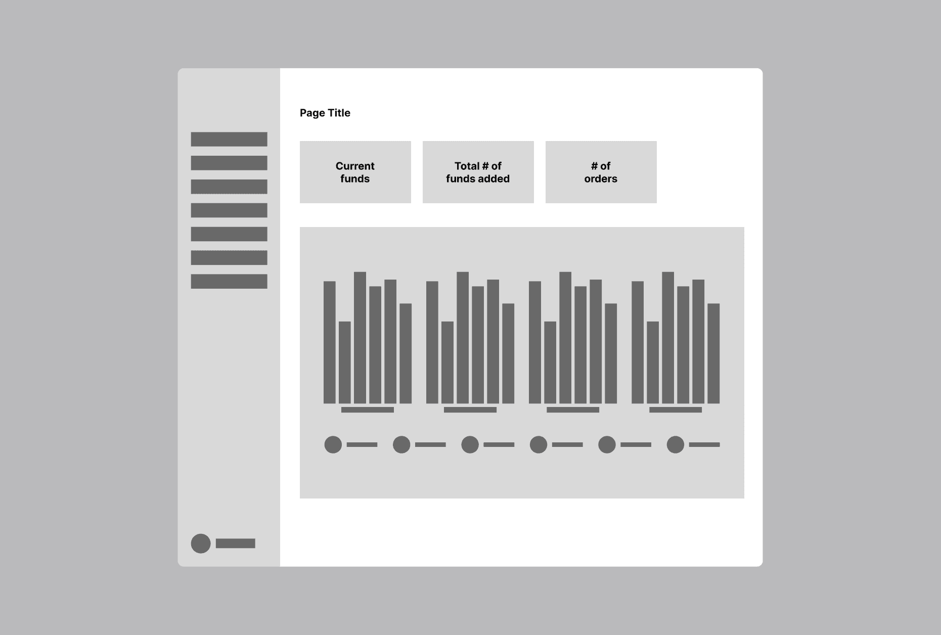 Funds & Activity Dashboard - Early visualization of how admins track balances, orders, and trends